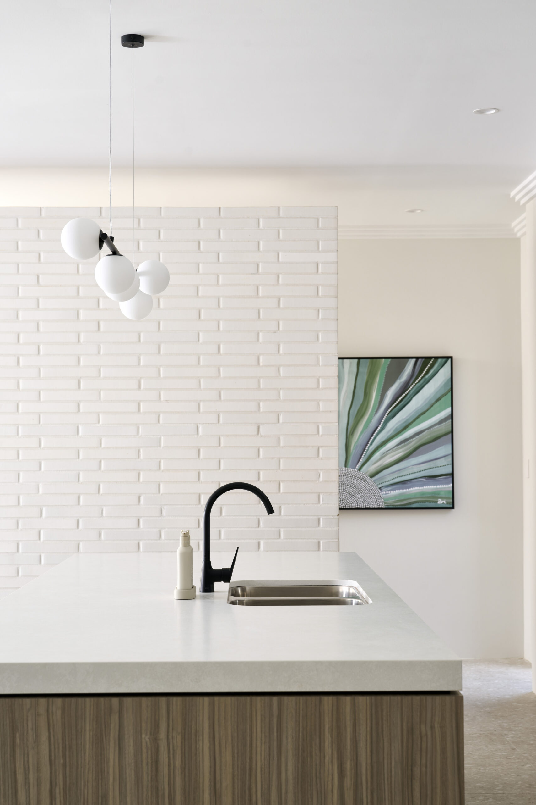 20mm silica free stone benchtops from the builder’s standard range with 300mm breakfast bar overhang