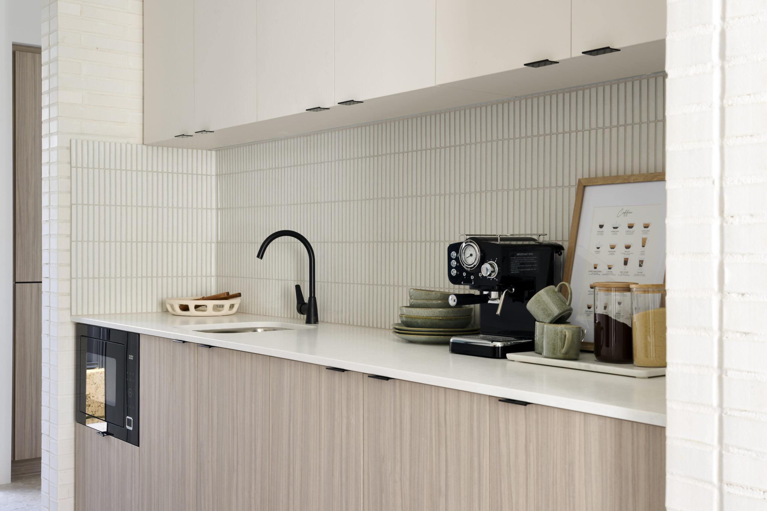 20mm silica free stone benchtops from the builder’s standard range to laundry